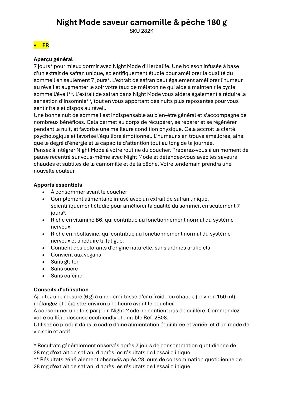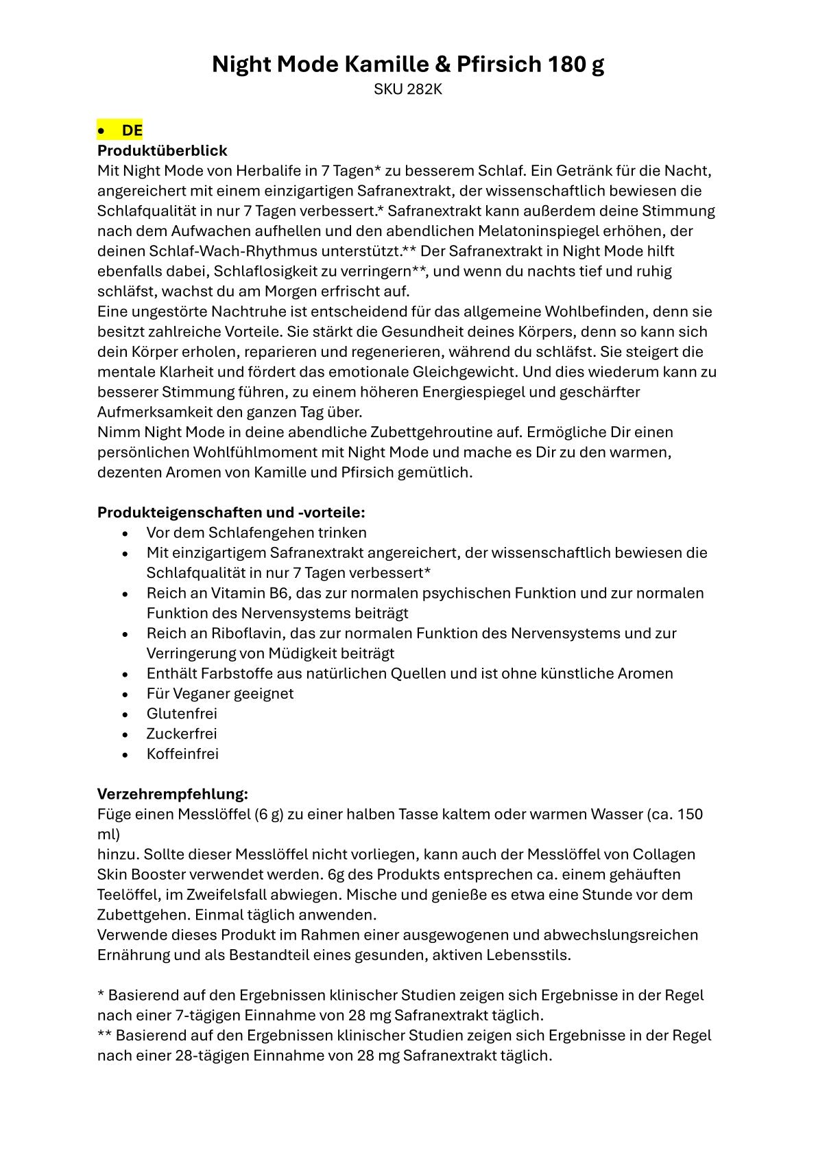 Nachtmodus: angereichertes Getränk auf Basis eines einzigartigen Safranextrakts, der wissenschaftlich untersucht wurde, um die Schlafqualität zu verbessern.